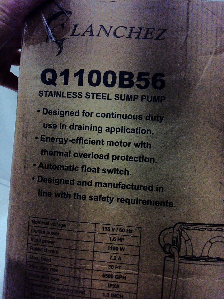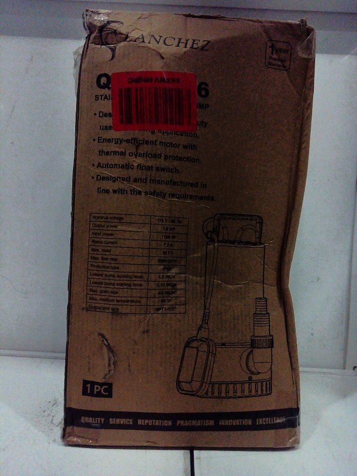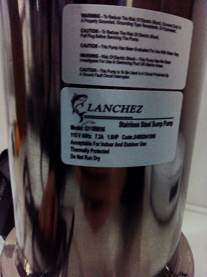 lanchez 1.6hp stainless steel sump pump - 115v - 1100w - 5500gph - silver/black (model: q1100b56-l)