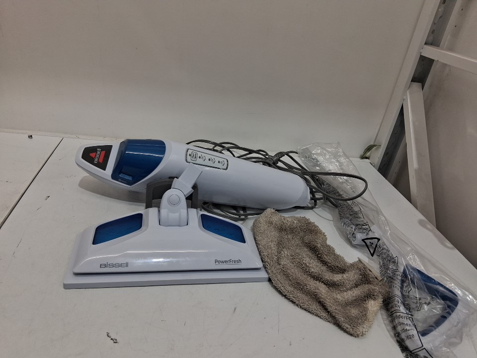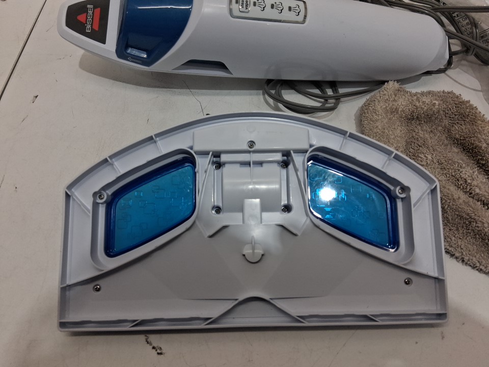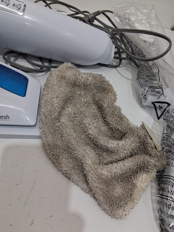 Tested for power. Item has some scuffing and dirt on the mop head/unit itself from previous use. It also a very strong smell possibly from a cleaner solution.