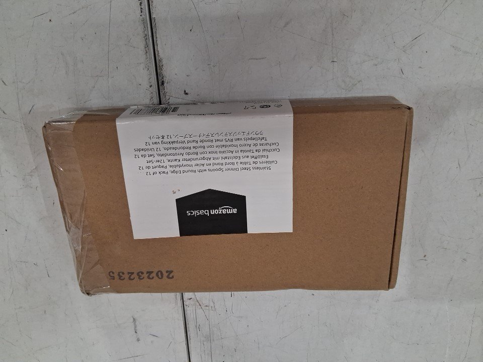 12PK AMAZON BASICS stainless steel DINNER SPOONS WITH pearled ROUND EDGE - STAINLESS STEEL