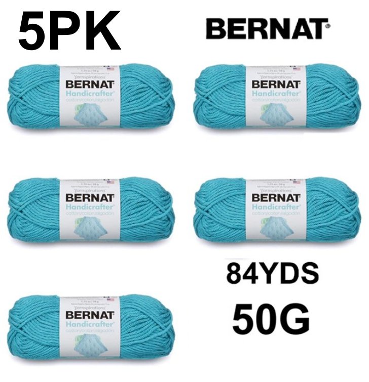 5PK Bernat Handicrafter Cotton (Worsted) Knitting/Crochet - Mod Blue - 80 Yards - 50g/1.75oz 4 Medium