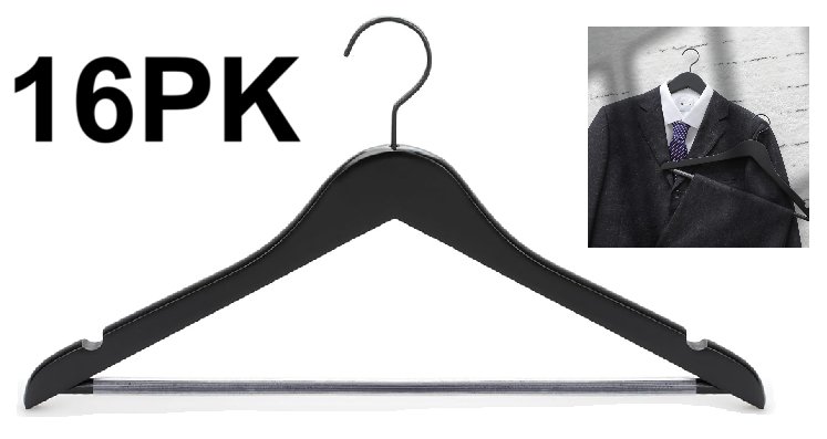 16PK TOPIA HANGAR Premium wooden clothes hangers - Black - (Model: CT01B)