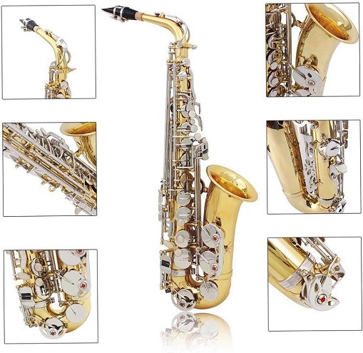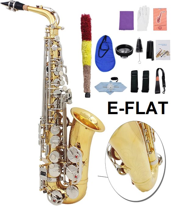 Btuty Alto Saxophone Eb E-Flat Sax, Woodwind Instrument with Case, Gloves & Accessories - Gold, Silver