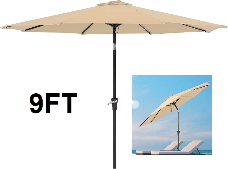 pakarde Outdoor Patio Umbrella With Tilt Adjustment and Crank Lift System - 9ft - Beige