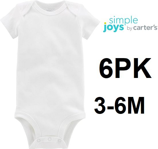 6PK Simple Joys by Carter's Baby Short-Sleeve Bodysuit - 3-6M - WHITE