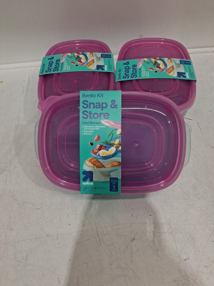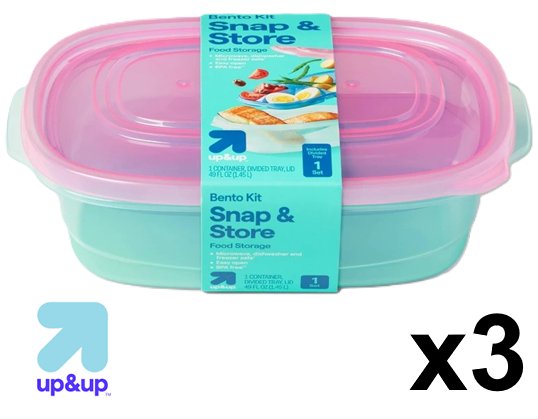 3 UP & UP BENTO KIT Storage Container with Tray - 49OZ - PINK/CLEAR