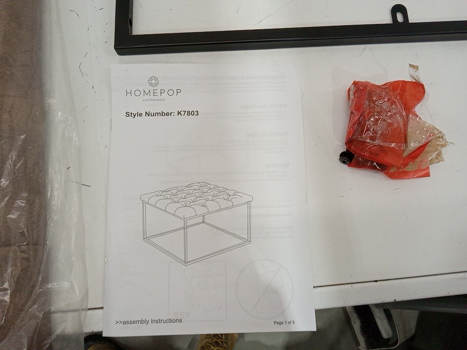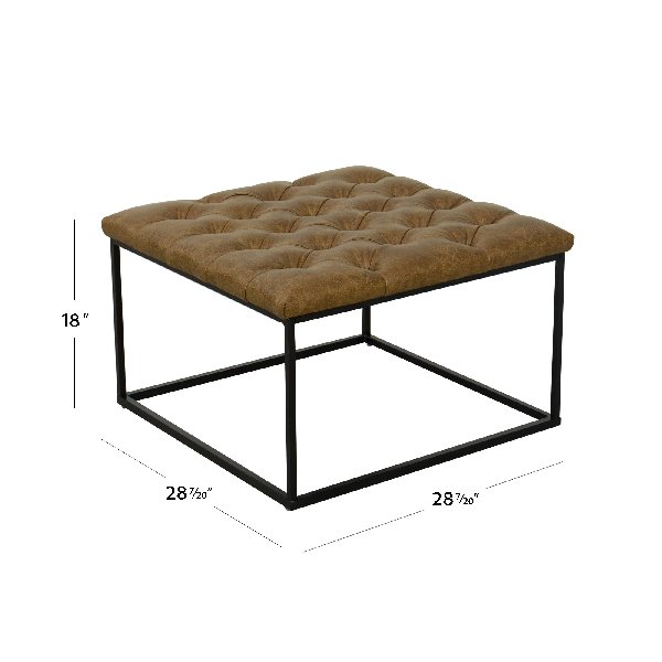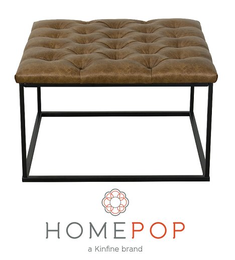homepop destressed faux leather button tufted ottoman - 28.25" x 28.25" x 18" - brown (model: k7803)