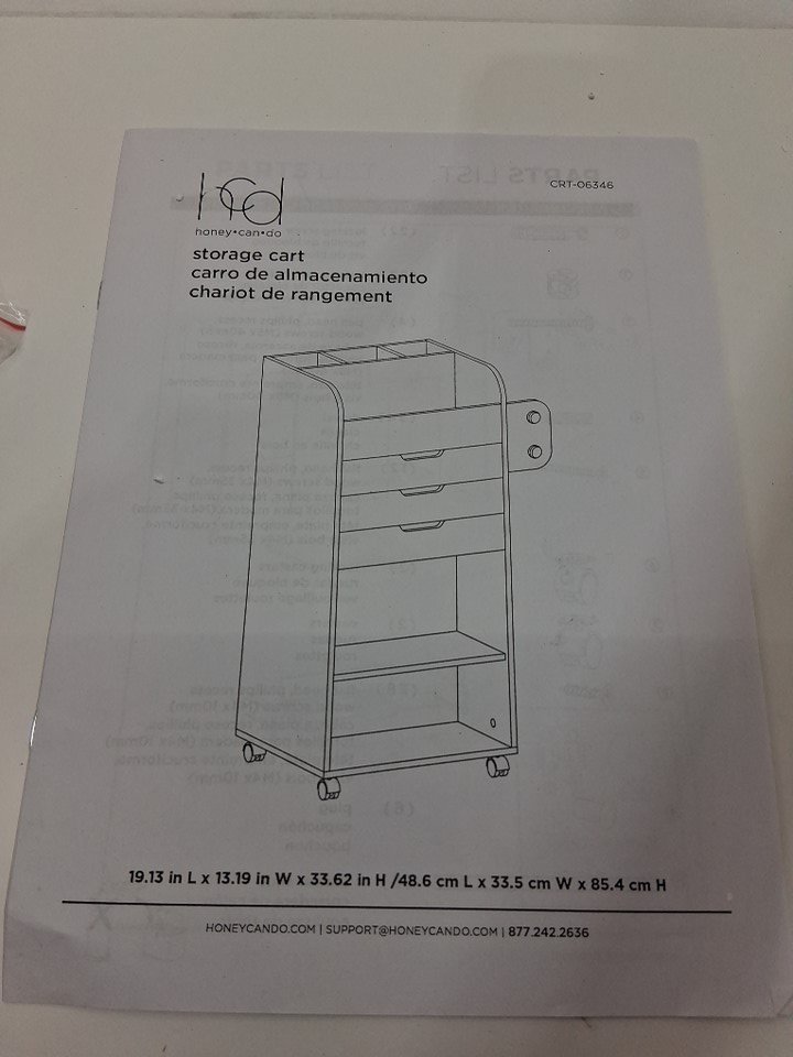 Honey-Can-Do CRT-06346 Rolling Craft Storage Cart with 3 Drawers, White, 19.13"x 33.62"