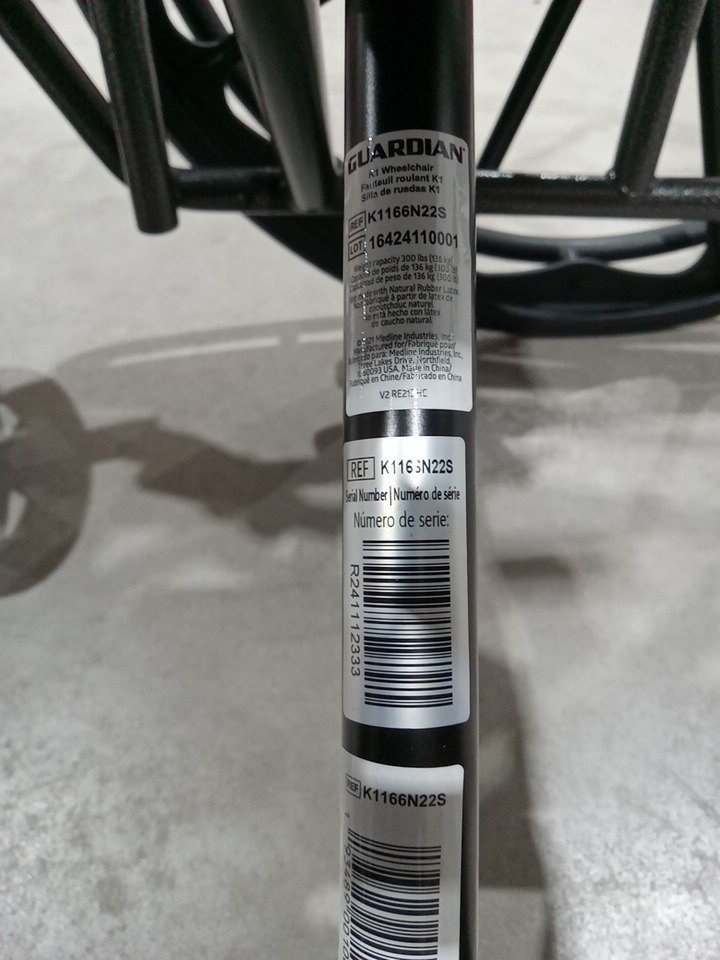 MEDLINE GUARDIAN K1 WHEELCHAIR - 300LB CAP - BLACK (MODEL: K1166N22S)