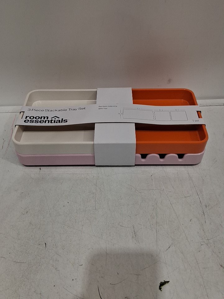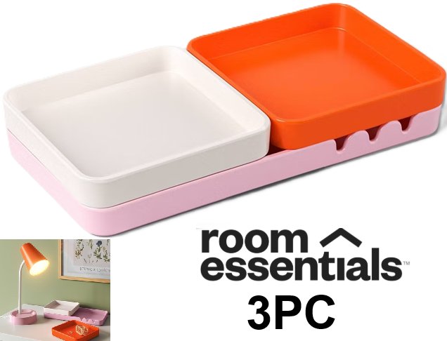 3PC Room Essentials Stackable Melamine Decorative Trays -ORANGE /PINK