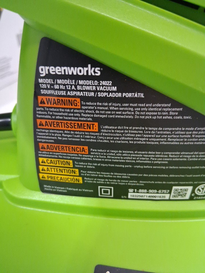 Greenworks 2-Speed Corded Electric Leaf Blower, Vacuum & Mulcher Combo - 230 MPH Air Speed - Collection Bag with Shoulder Strap Included - 12A (MODEL: 24022)
