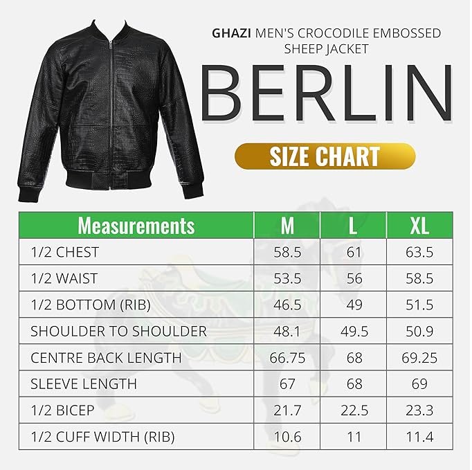 men's ghazi genuine leather crocodile embossed sheep jacket - large - black (style: GF- Embossed - L)