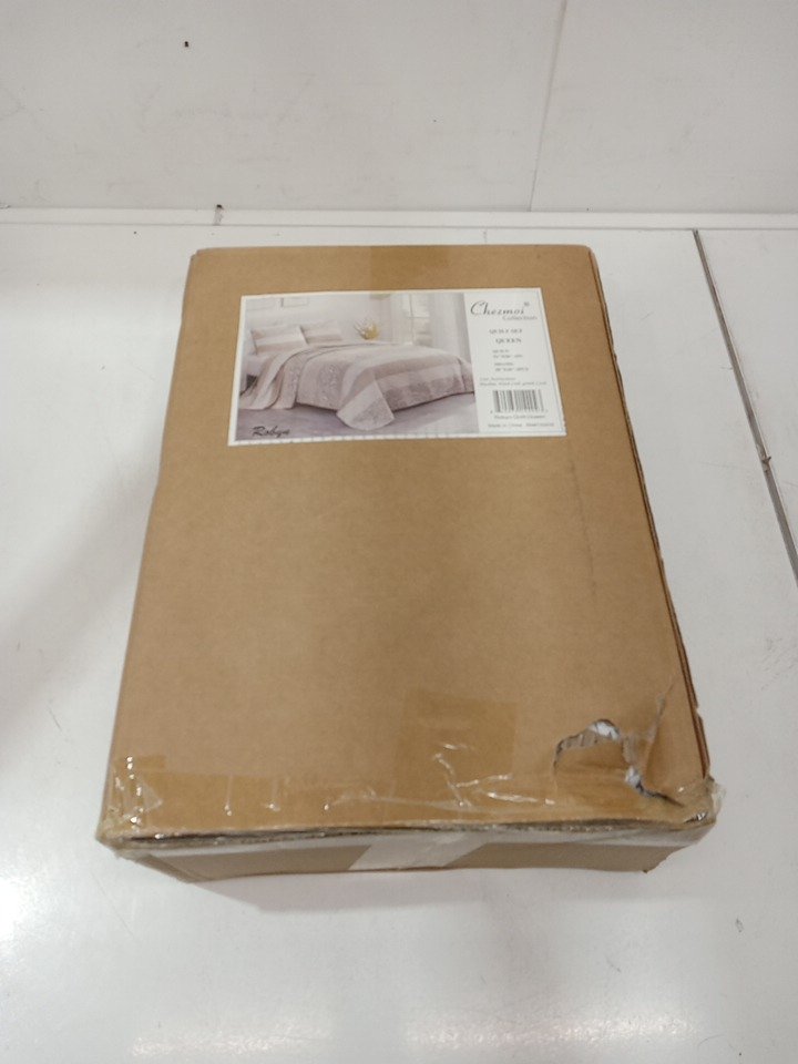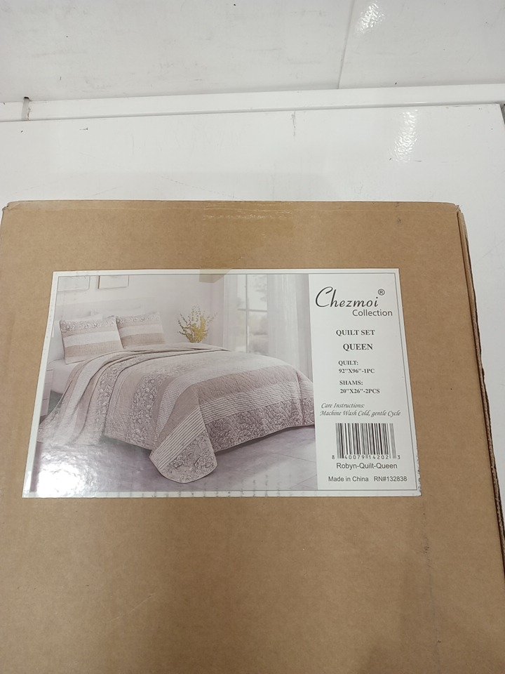3PC Chezmoi collection robyn patchwork quilt with pillow shams - Queen - 92" x 96" - 20" x 26" shams - Floral hibiscus taupe