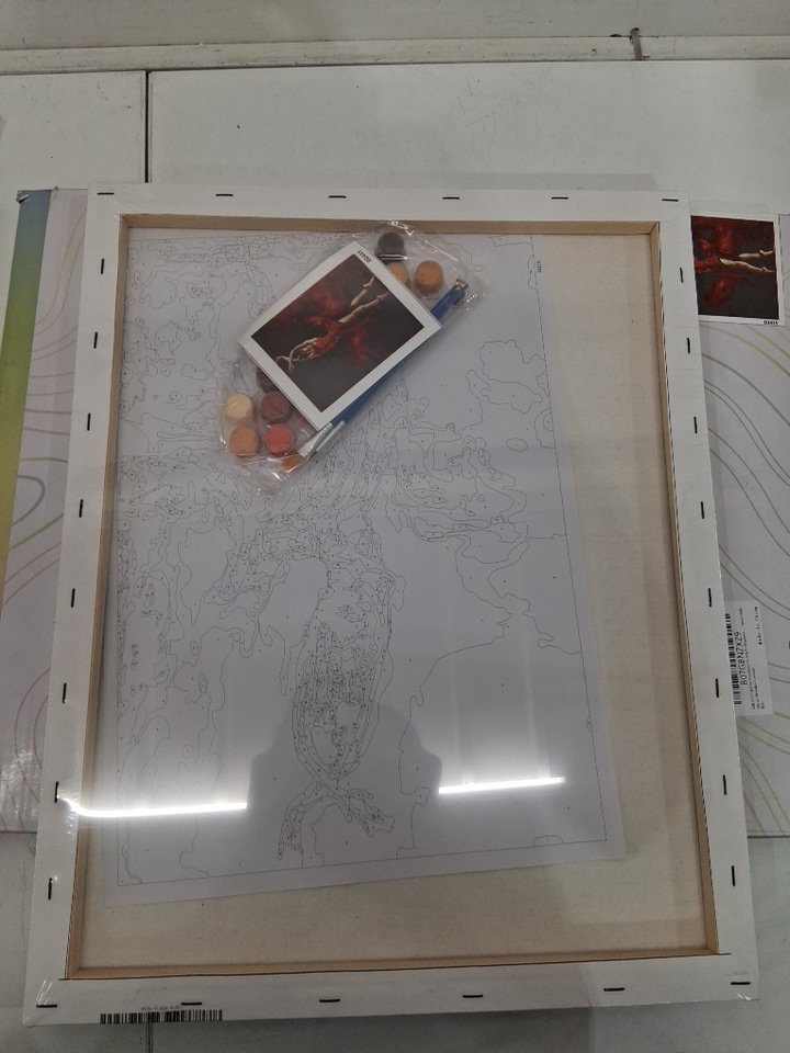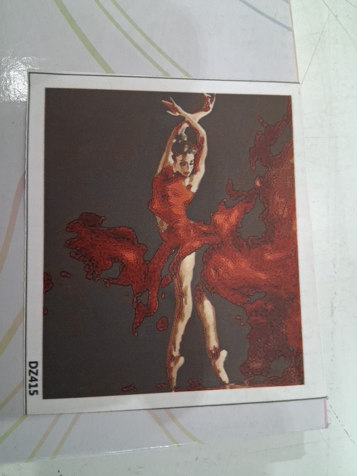 A beuty paint by numbers wall art, wooden framed - 16" x 20" - fire red ballet dancer (model: dz415)