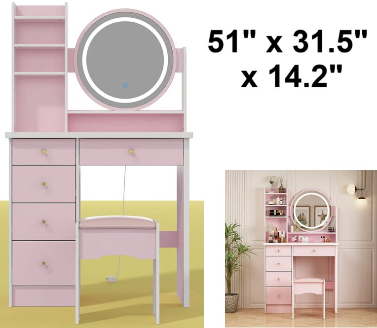 Hermanson Vanity - 53.5" x 31.5" x15.6" - Pink/Purple (Model:210095-03-24A-HC)