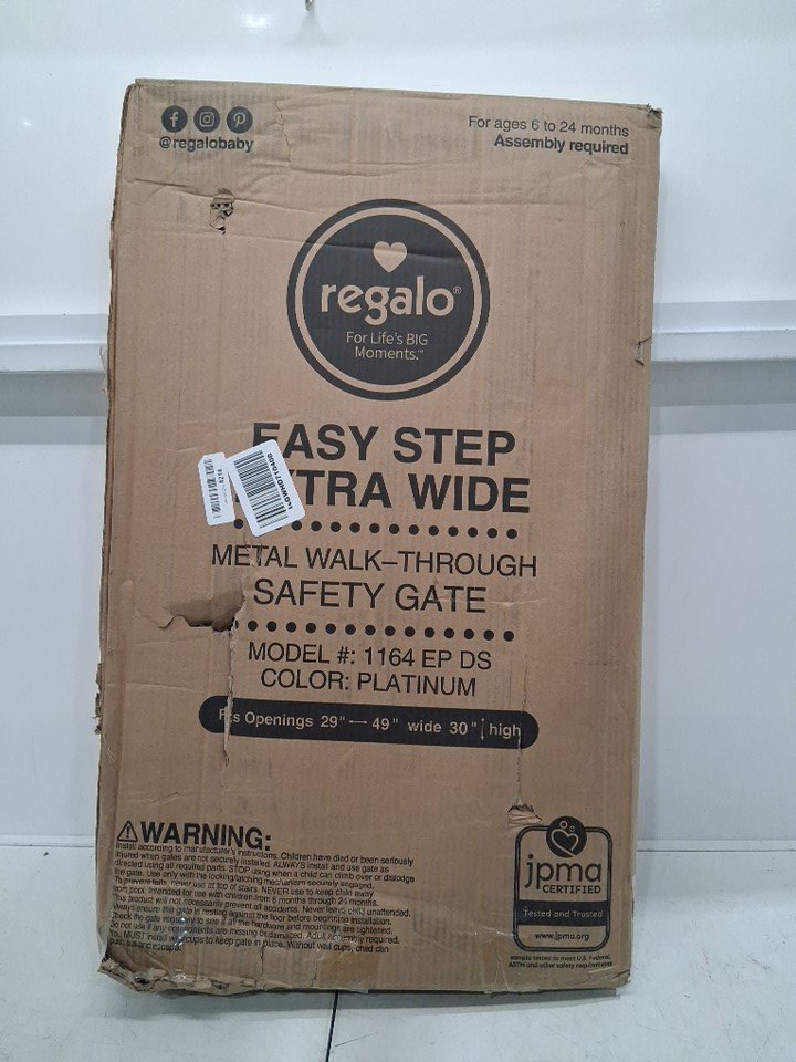 REGALO EASY STEP EXTRA WIDE METAL SAFETY GATE - 30" x 29" to 49" - platinum GREY (MODEL: 1164EPDS)