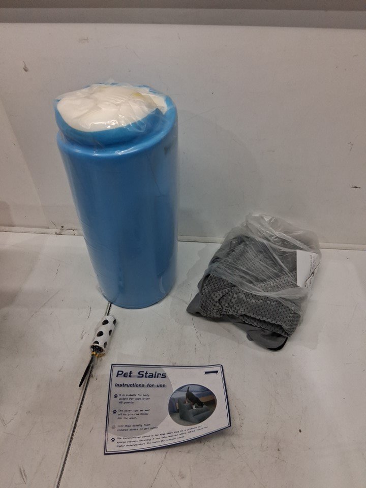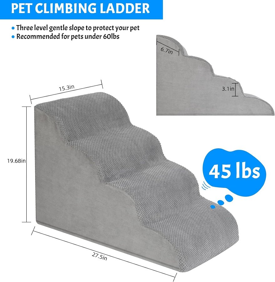 DURABLE FOAM PET STAIRS WITH LINT ROLLER (2-REFILLS) - 4-TIERS, 19.68"H - GRAY - (MODEL: NA-PPTH51)