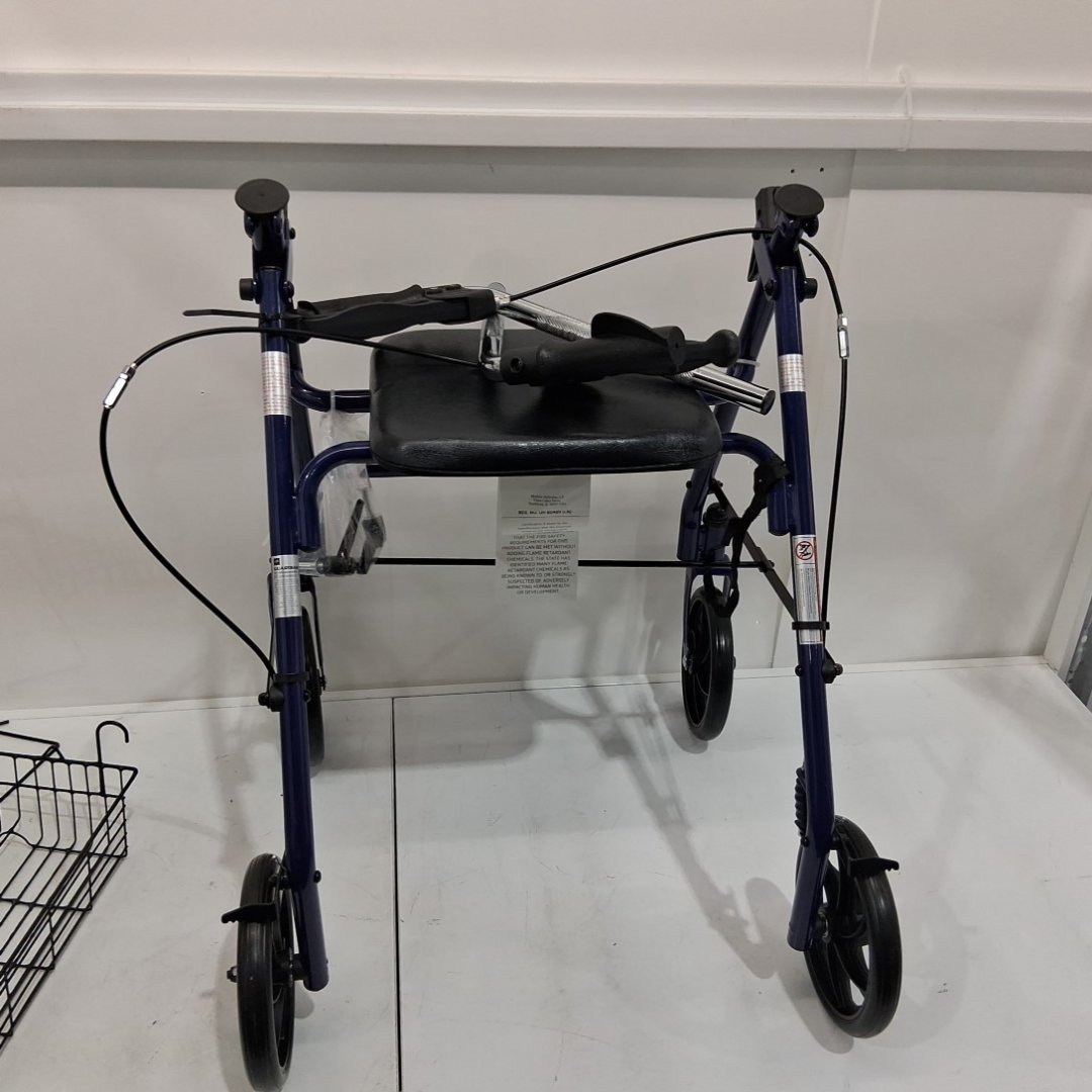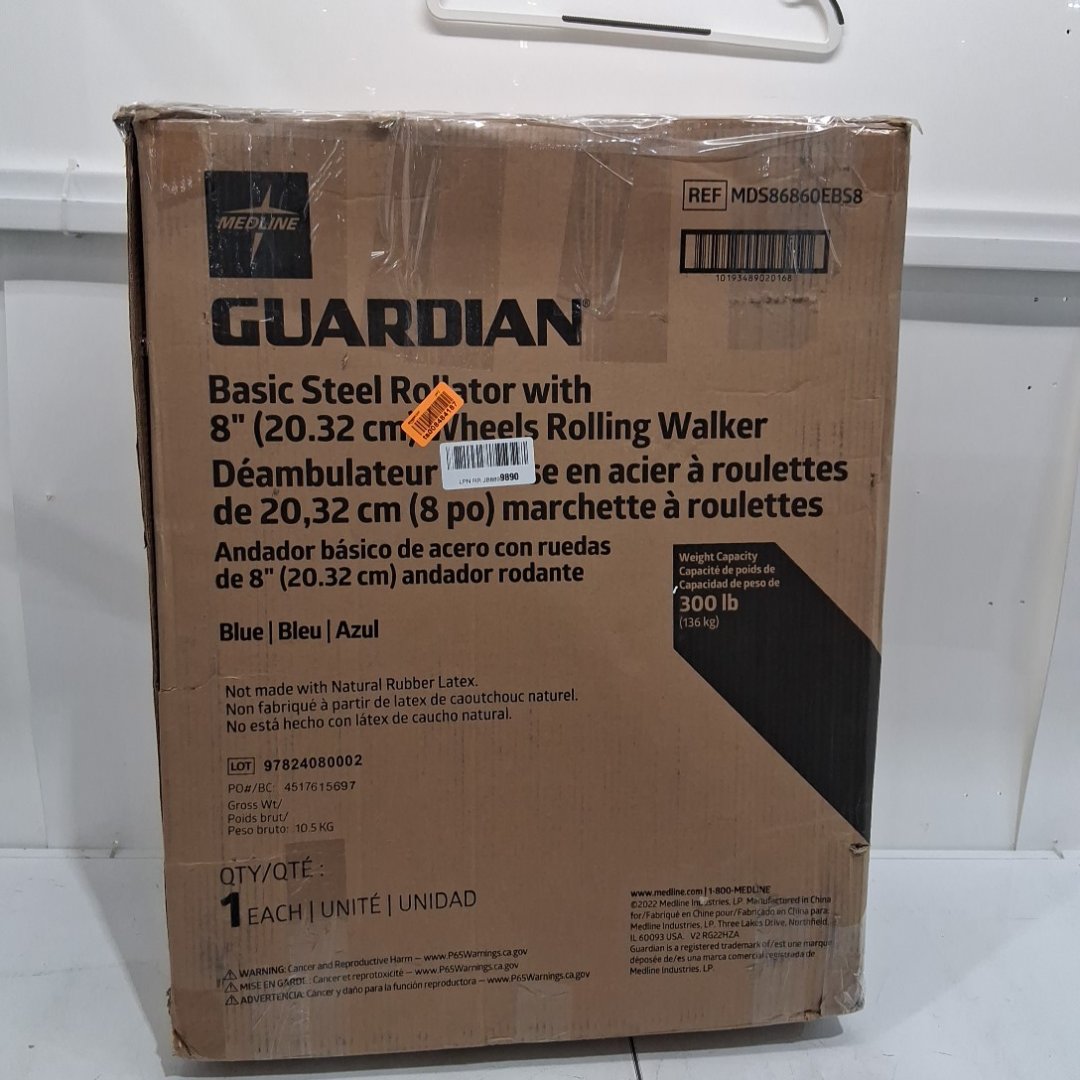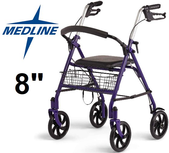 Medline GUARDIAN Basic Folding Steel Rollator with 8" Wheels and Basket, Blue (MODEL: MDS86860EBS8)