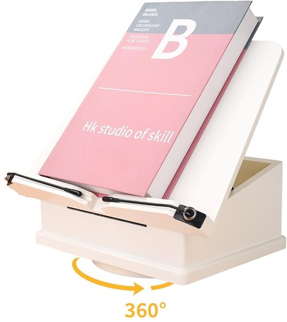 TJBALLY wooden book/tablet stand with carousel base, 360 rotation with adjustable reading heights - white (model: 2401052)