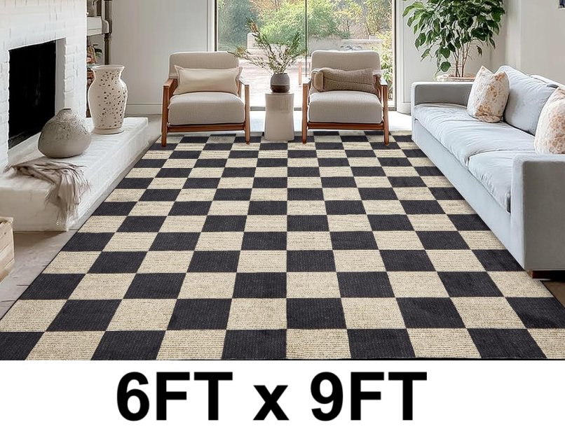 ultra-thin nonslip machine washable area rug- 6ft x 9ft -black/camel