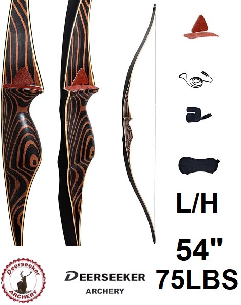 Deerseeker left hand Traditional Bow Hunting Longbow/recurve bow with Bamboo Core Limbs - 54"/75LBS - Brown