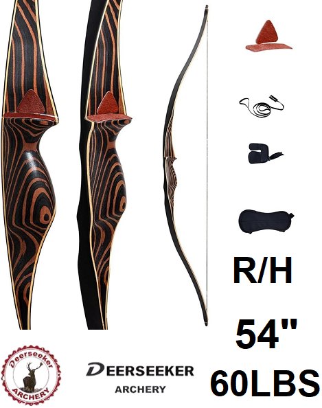 Deerseeker right hand Traditional Bow Hunting Longbow/recurve bow with Bamboo Core Limbs - 54"/60LBS - Brown