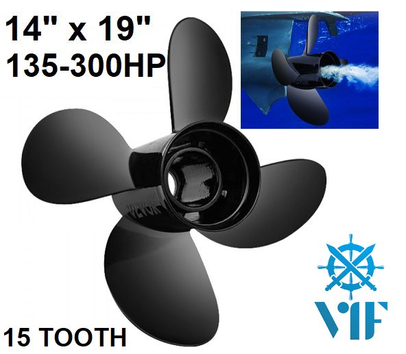 vif propellers outboard replacement boat propeller - 14" x 19"/135-300hp/15 tooth - black - (model: 48-8M0084495)