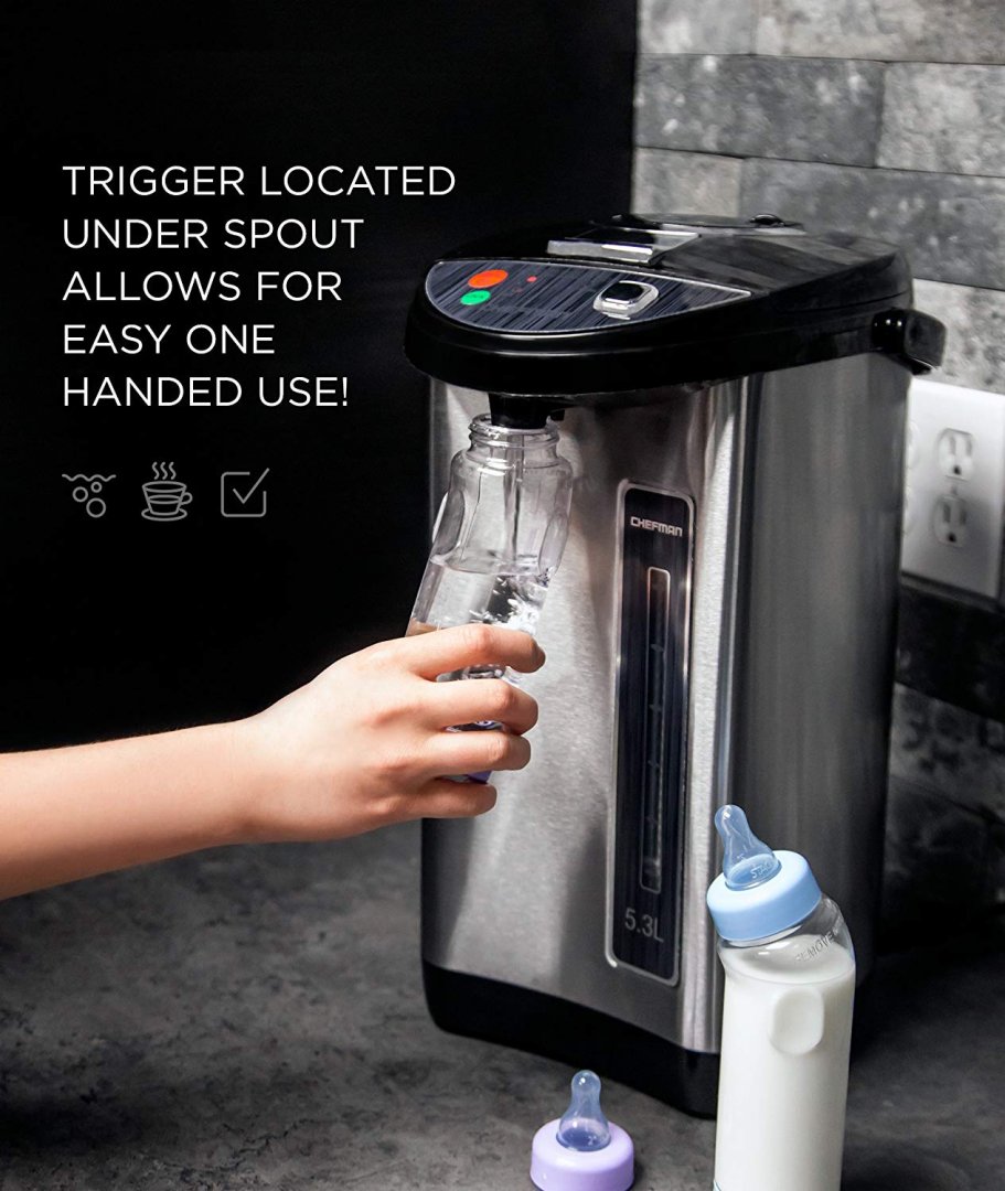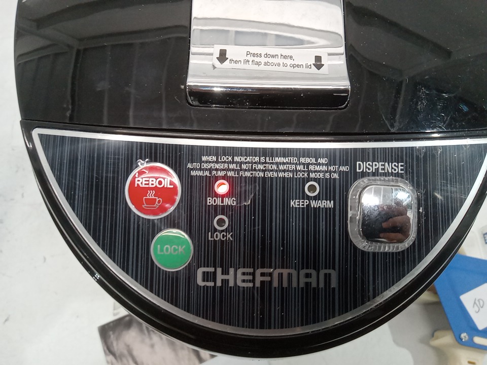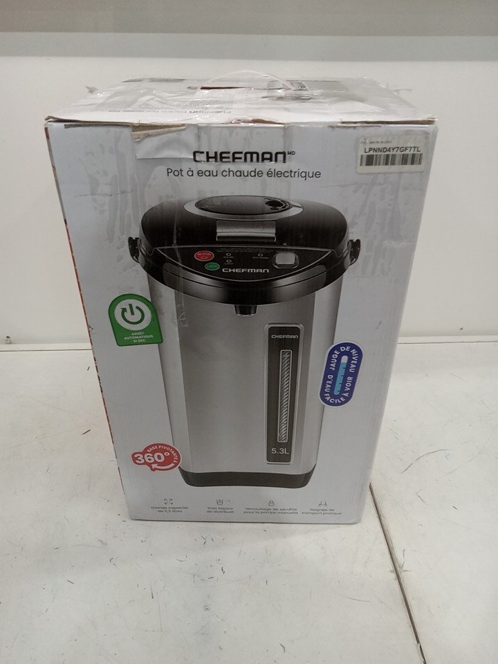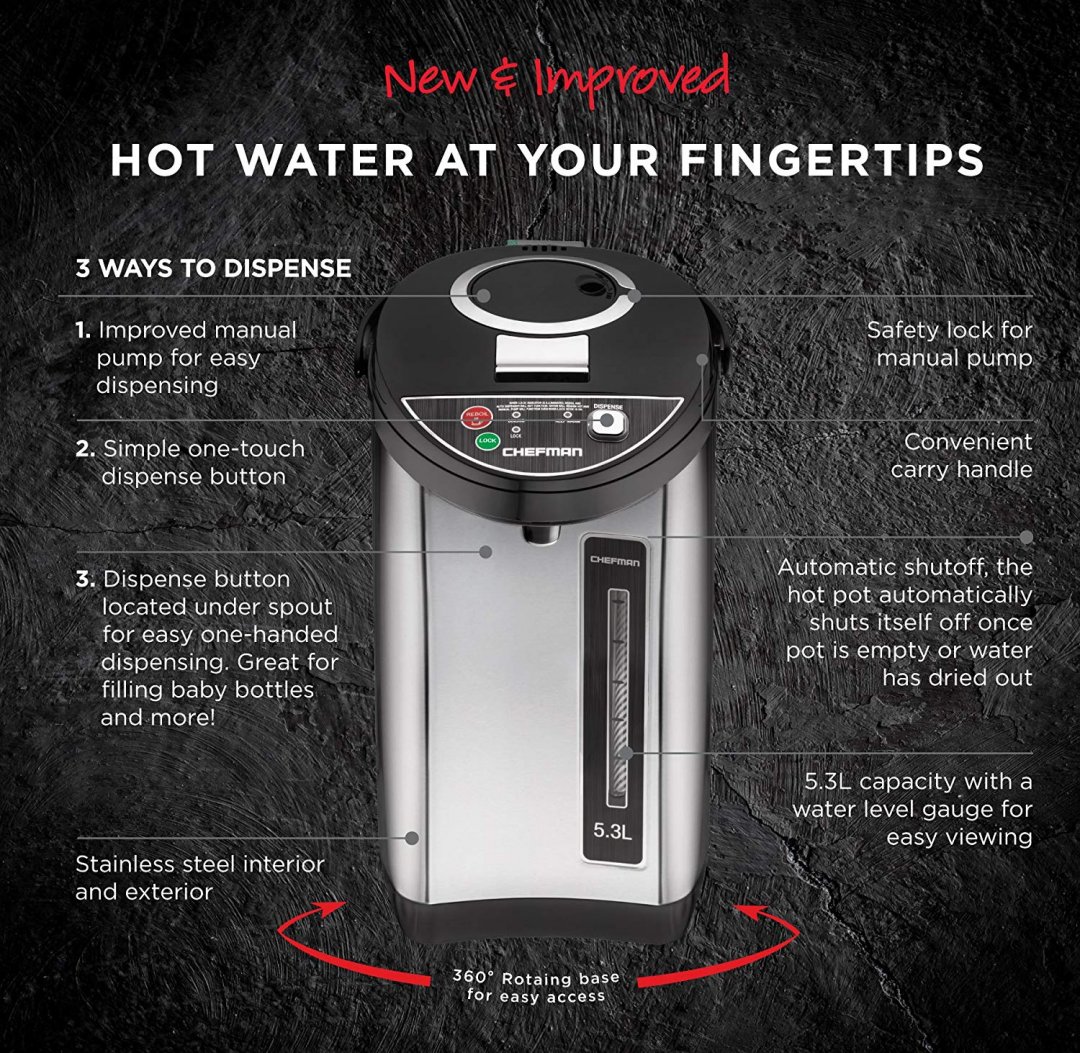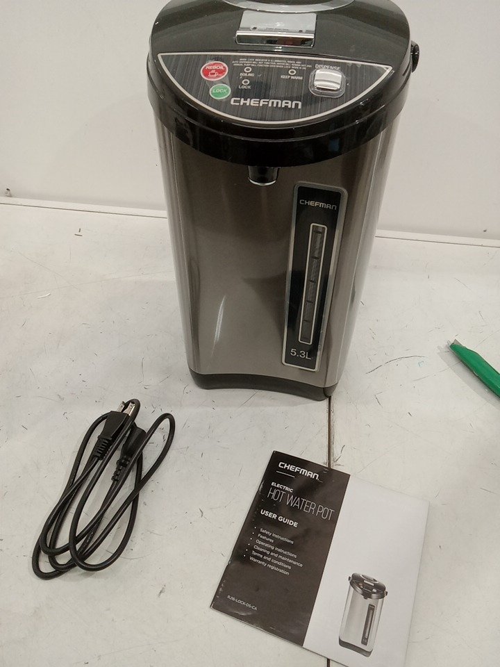 CHEFMAN ELECTRIC HOT WATER POT WITH LOCKING LID - 5.3L CAPACITY - STAINLESS STEEL/BLACK (MODEL: RJ16-LOCK-ds))