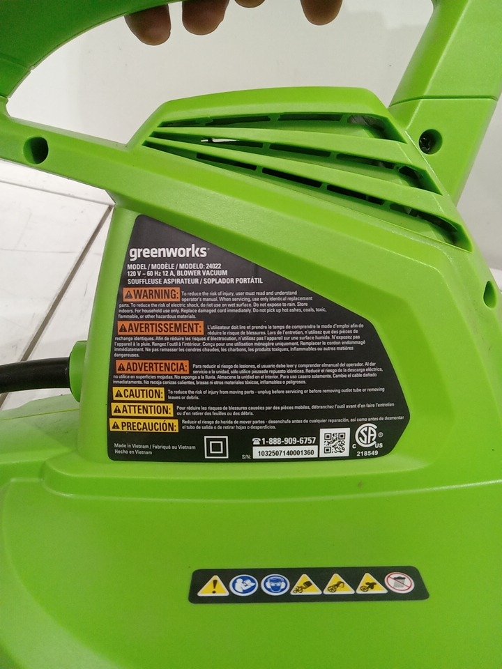 Greenworks 2-Speed Corded Electric Leaf Blower, Vacuum & Mulcher Combo - 230 MPH Air Speed - Collection Bag with Shoulder Strap Included - 12A (MODEL: 24022)