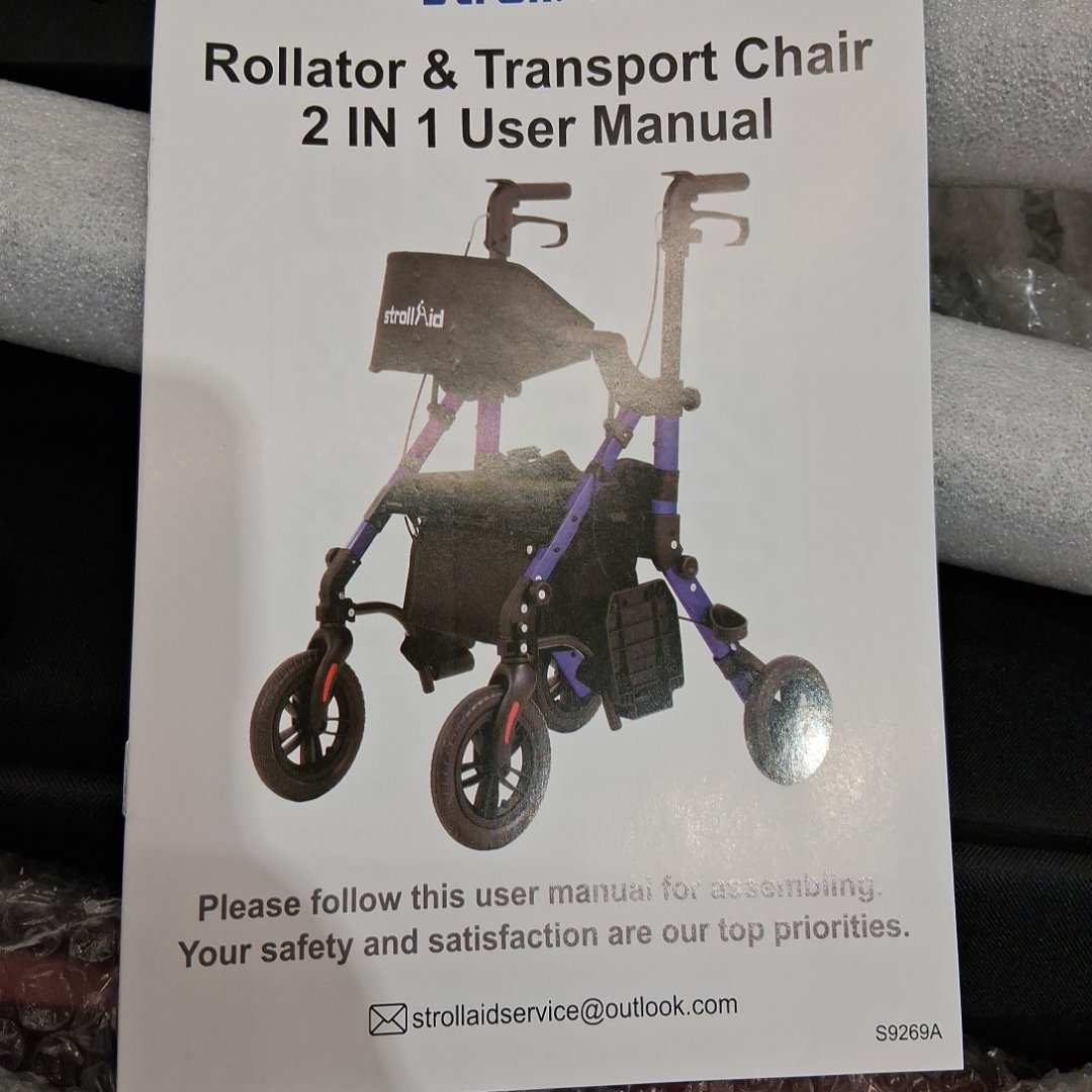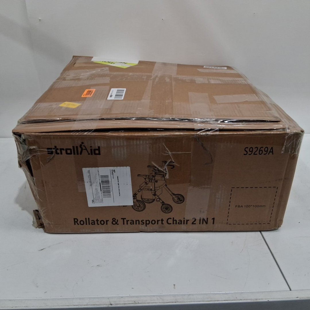 StrollAid 2-in-1 Rollator Walker/Wheelchair Combo Transport Chair with Brakes - Holds Up to 450 LBS - 10" Wheels - Black (Model: S9269A)
