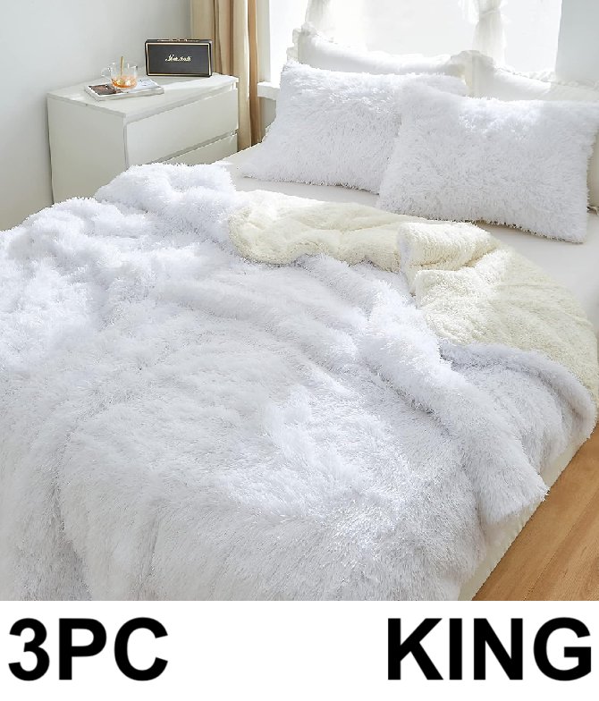 3pc flysheep faux fur shag reversible comforter & sham set - white/cream