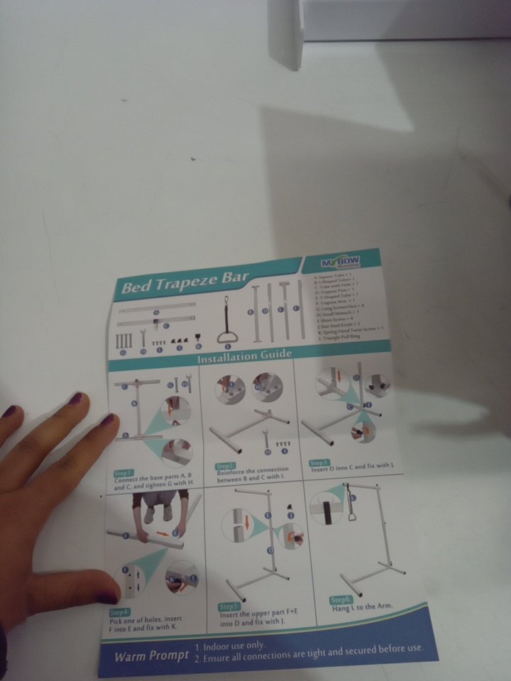 Mybow Trapeze Bar for Bed Mobility - 300lbs max - white (model:‎TB-B-001-W)