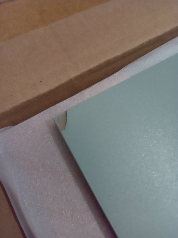 appears that one of the boards has a small chip off of one of the corners (See photo)