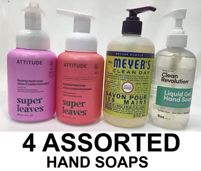 4 ASSORTED hand soaps - assorted brands, scents & sizes