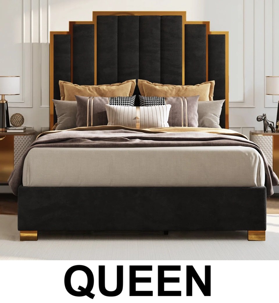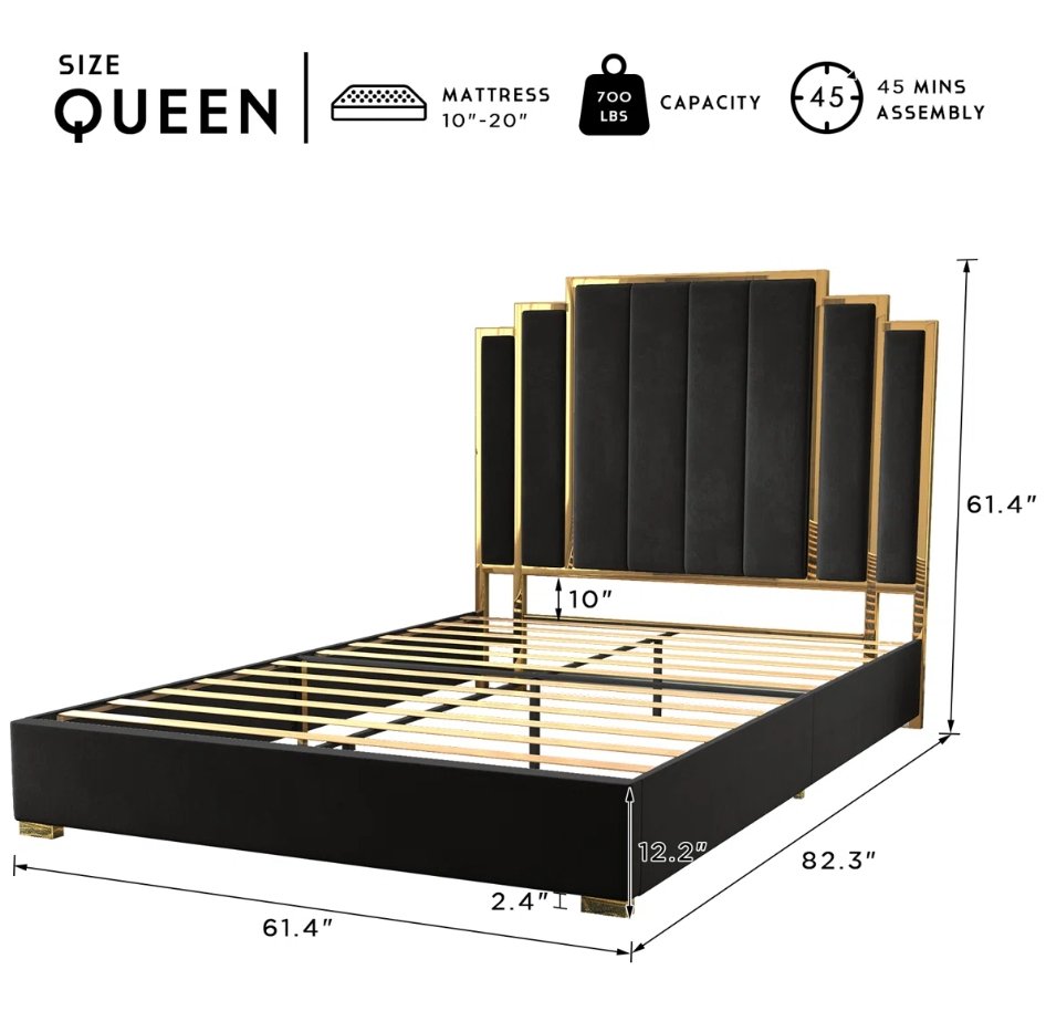 jocisland upholstered platform bed with 61" headboard - queen - black/gold - (model: bhb007)