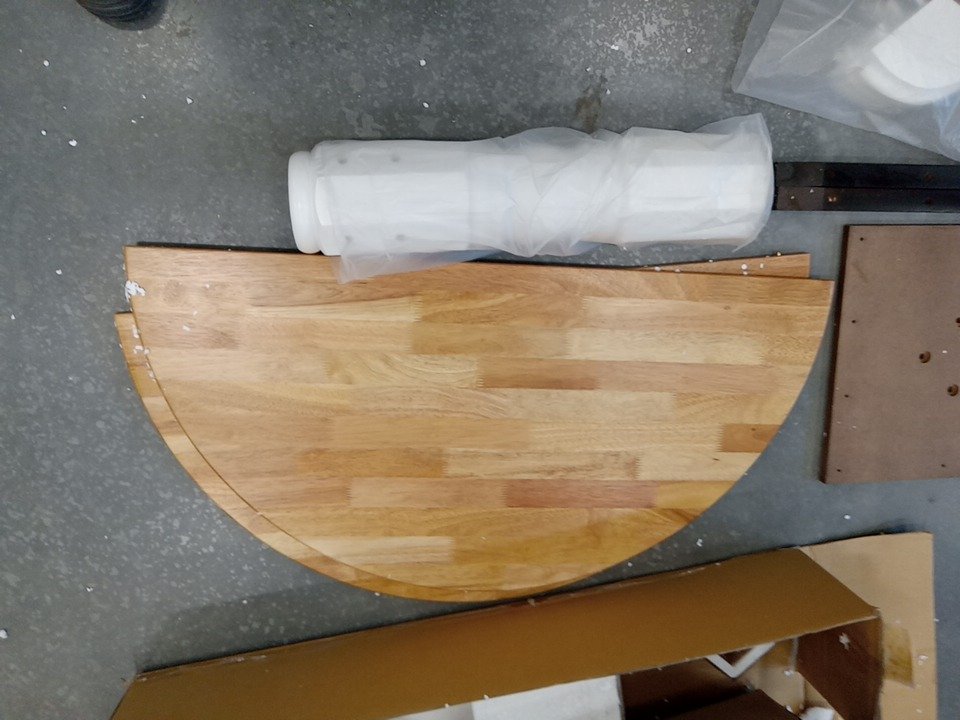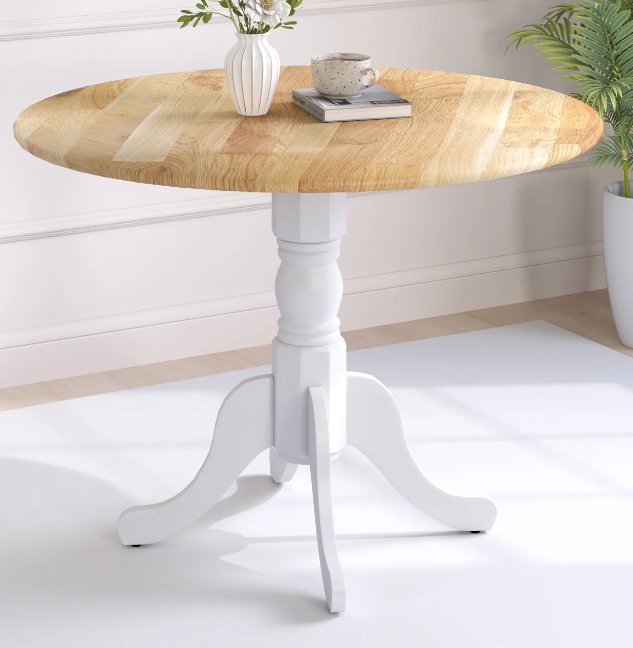 Wooden Dining Table with Round Tabletop and Curved Trestle Legs - 29" x 39" - natural & white (model:KC55732SO)