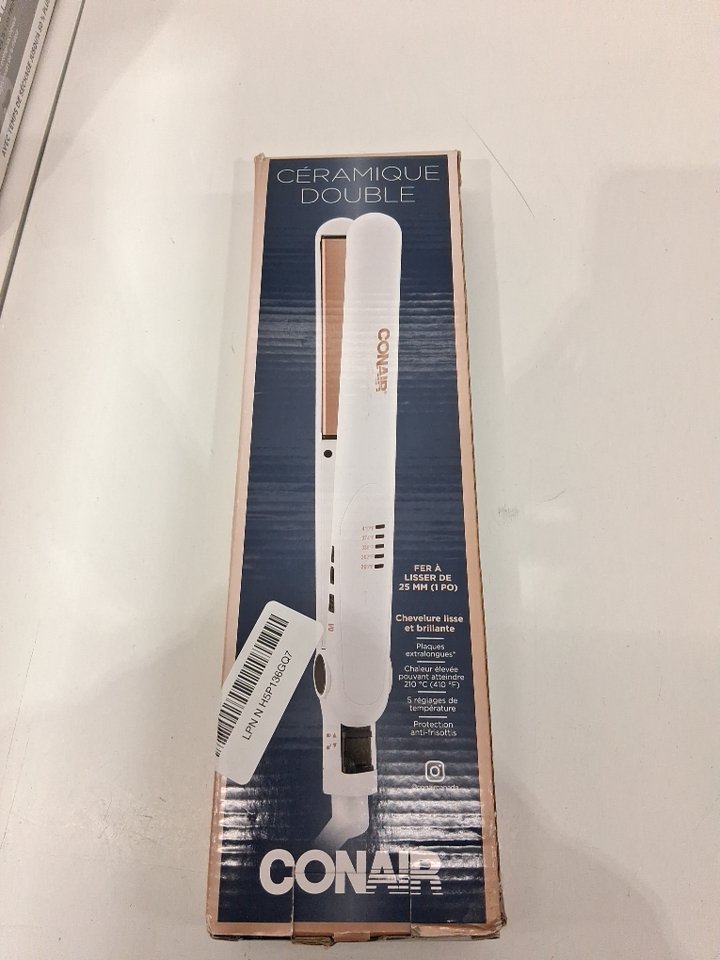 CONAIR DOUBLE CERAMIC STRAIGHTENER FLAT IRON - 1" - WHITE/ROSE GOLD (MODEL: CS221NC)