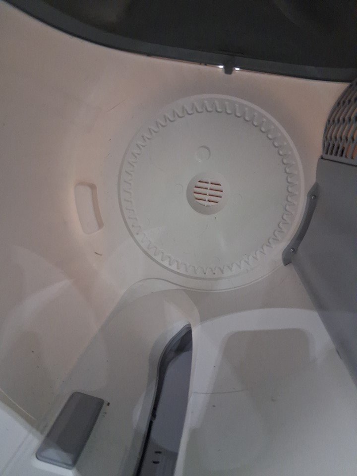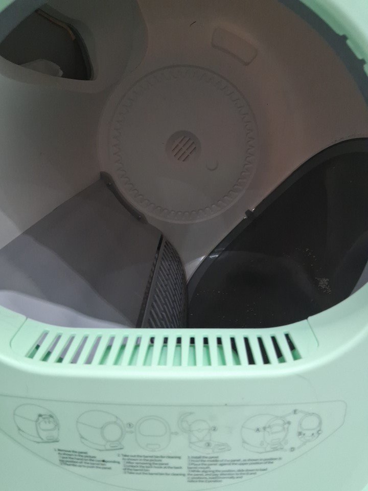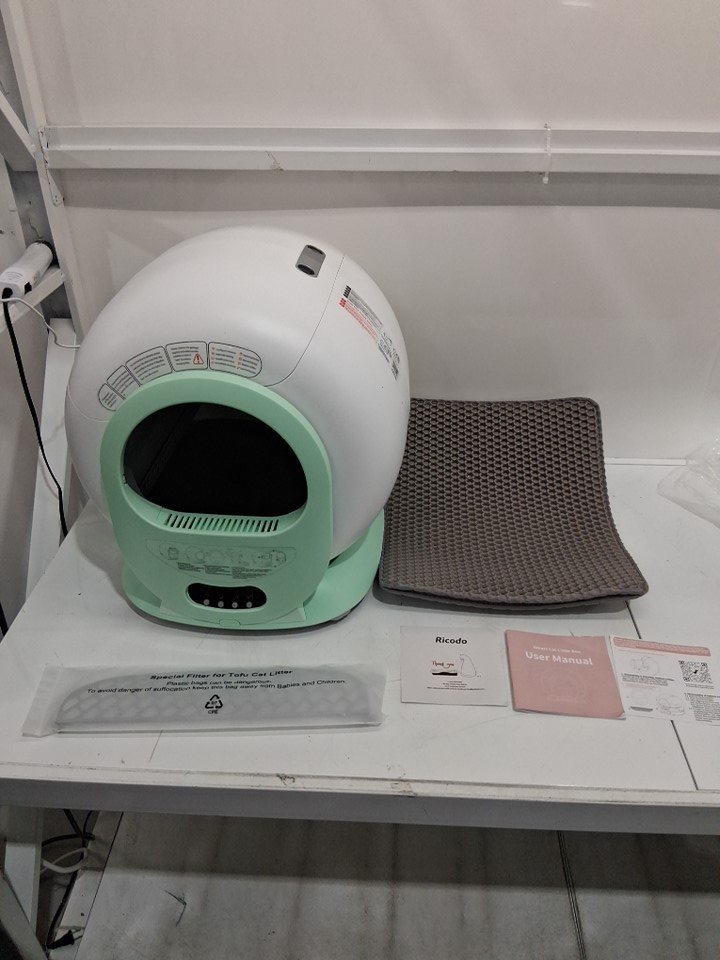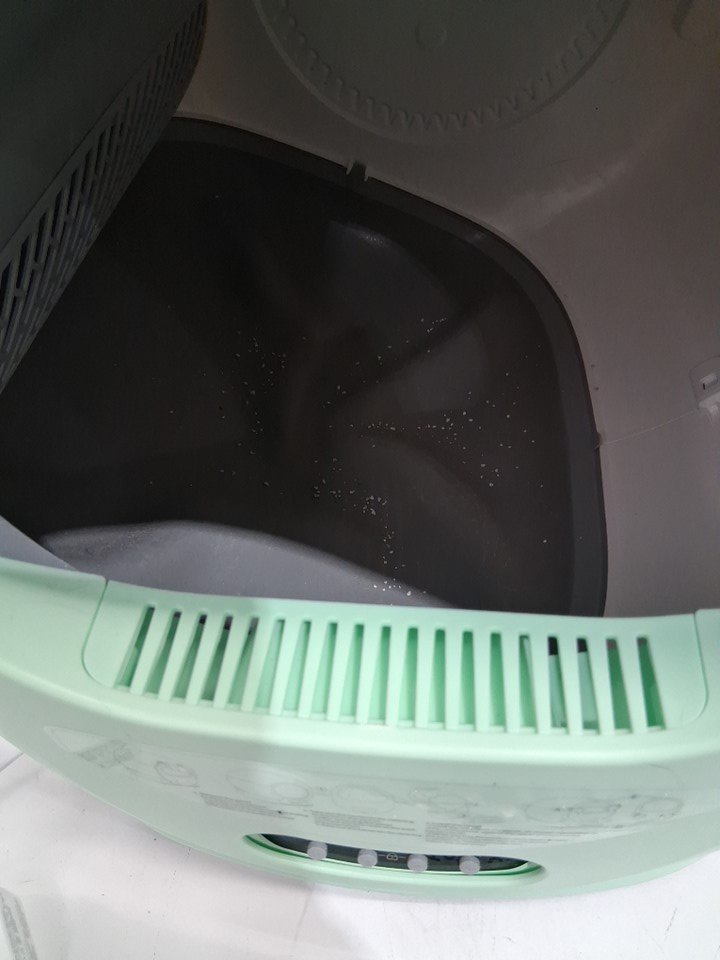 there is litter in this litter suggesting previous use, there isn't any strong odors coming from this. tested for power, and watched it through a full cycle.