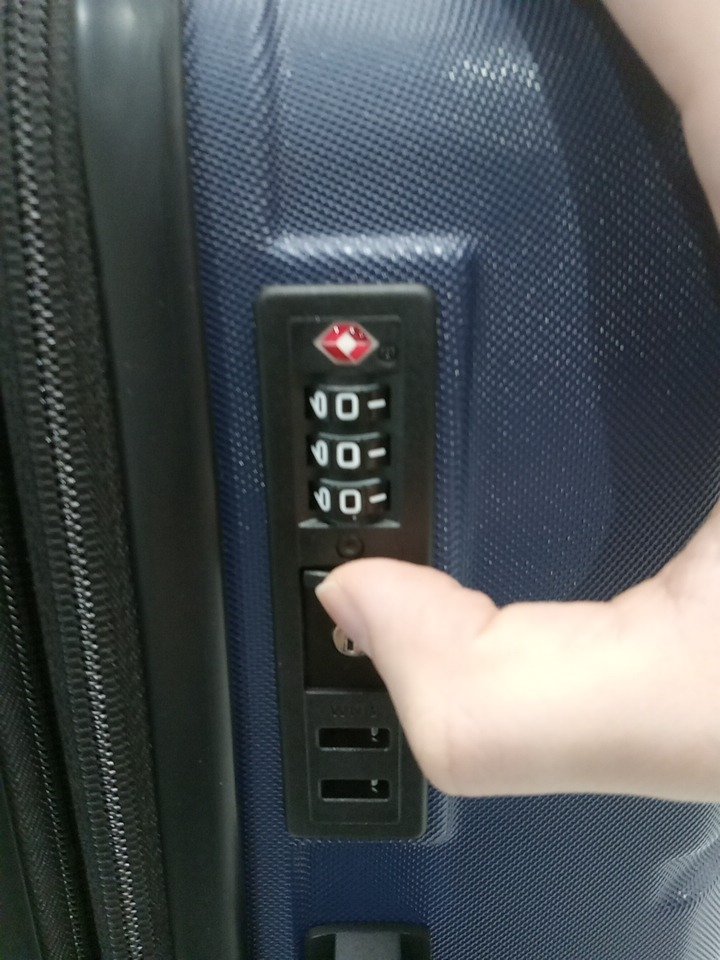 Some scuffs on it and some dirt on the wheels from previous use. Code set to 0-0-0