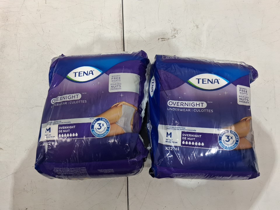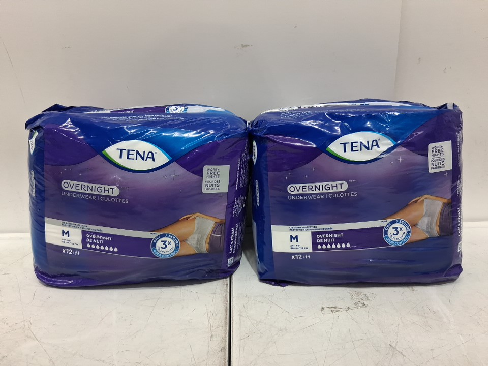 (2) 12PK WOMENS' TENA DISPOSABLE OVERNIGHT ABSORBENT UNDERWEAR WITH LIE-DOWN PROTECTION - MEDIUM (34"-44") - WHITE