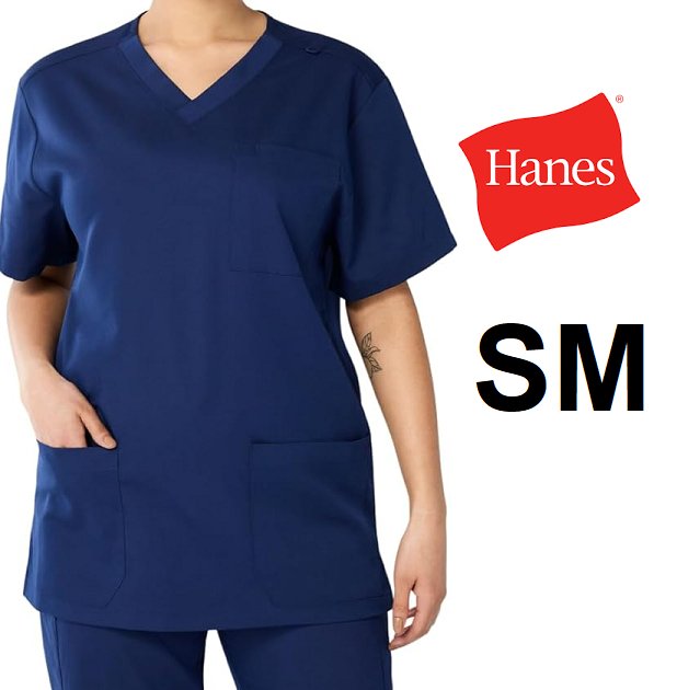 UNISEX HANES comfort fit odor control scrub top - small - navy ( style: usm100)