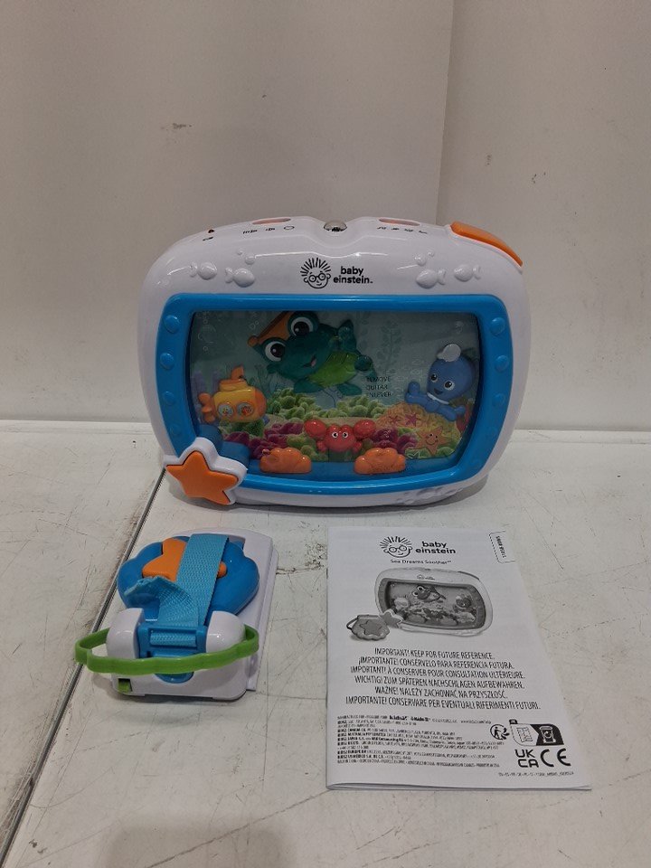 BABY EINSTEIN SEA DREAMS SOOTHER CRIB TOY WITH REMOTE, LIGHTS AND MELODIES FOR NEWBORNS AND UP - WHITE/BLUE (MODEL: 11058)
