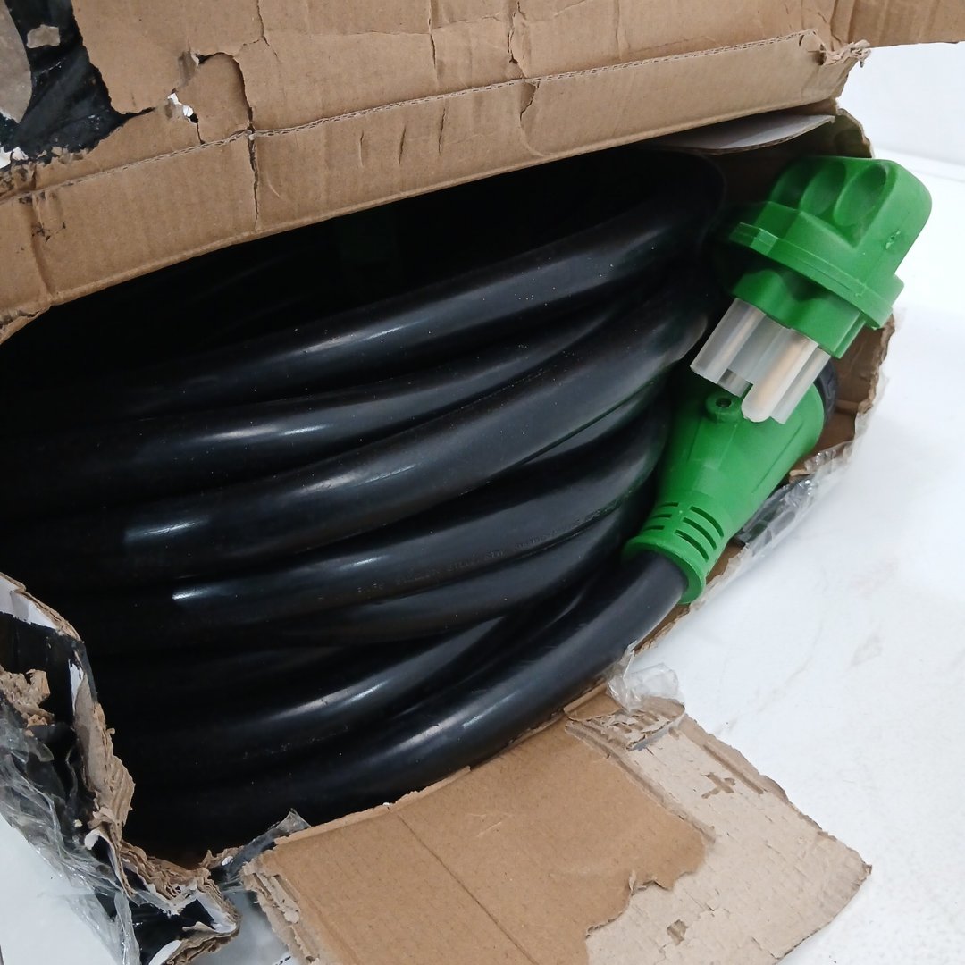 50FT RV EXTENSION CORD 50A, 125/250V WITH 50P MALE PLUG & SS2-50 FEMALE - (GREEN HANDLE)