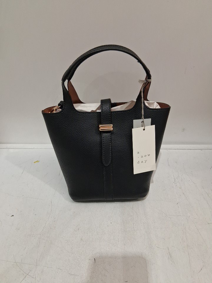 A NEW DAY Mini Tulip Tote Handbag with Crossbody Strap - BLACK (STYLE:024-06-1933)