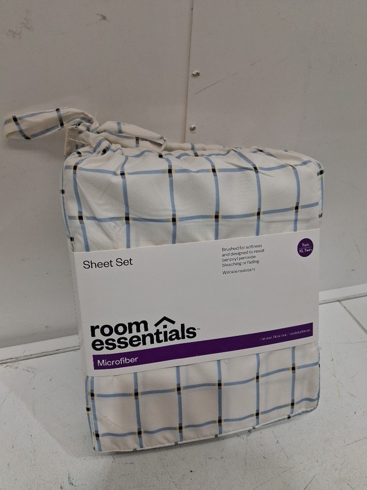 3pc room essentials microfiber sheet set - flat sheet, fitted sheet, pillow case - twin / twin xl - BLUE GRID