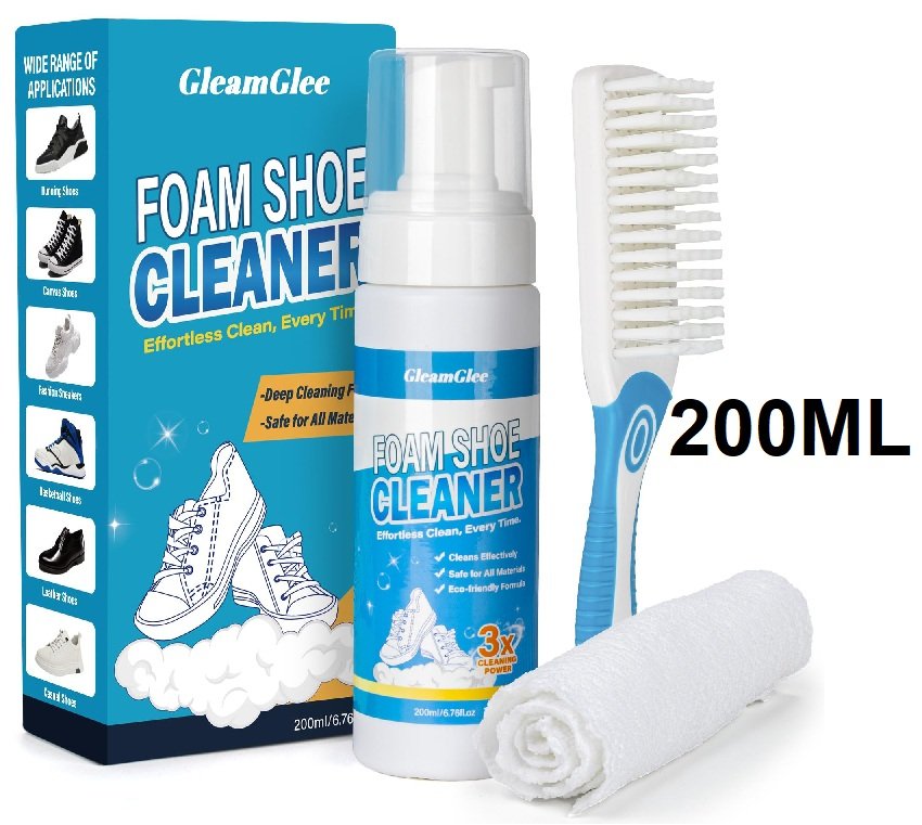 gleamglee foam shoe cleaner with shoe brush and cloth - 200ml