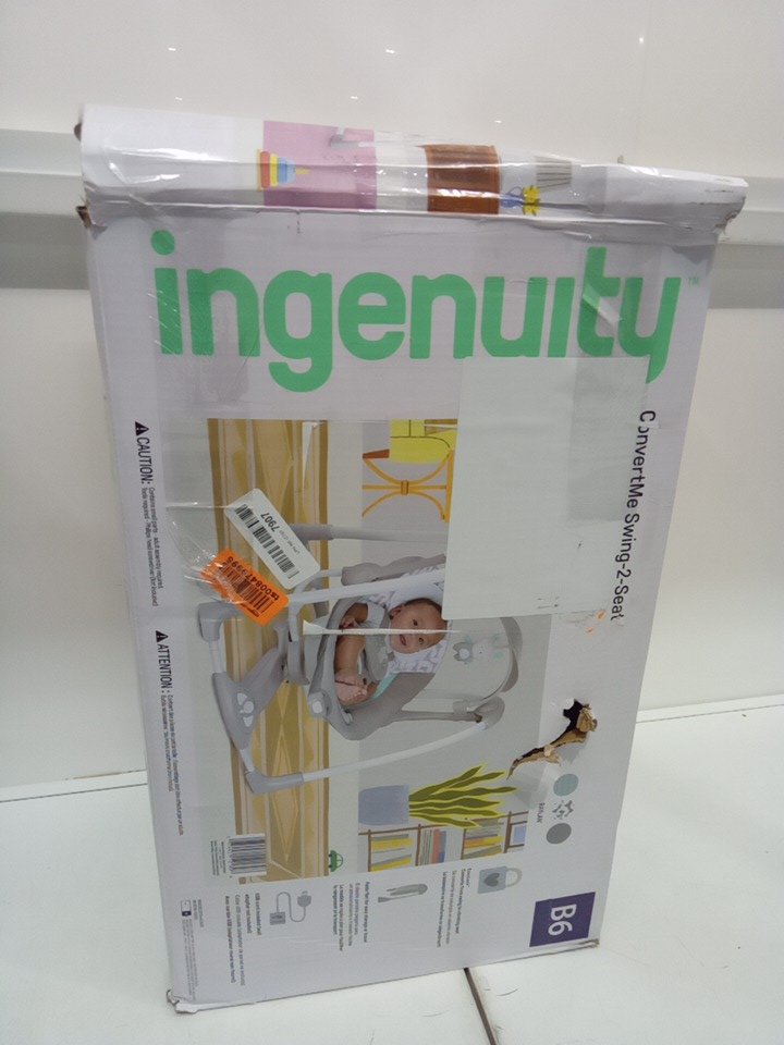 INGENUITY convertme 2-in-1 compact portable plug in automatic baby swing and infant seat - 0 to 9 months - 6lbs to 20lbs - grey - (model: 12189-ES)