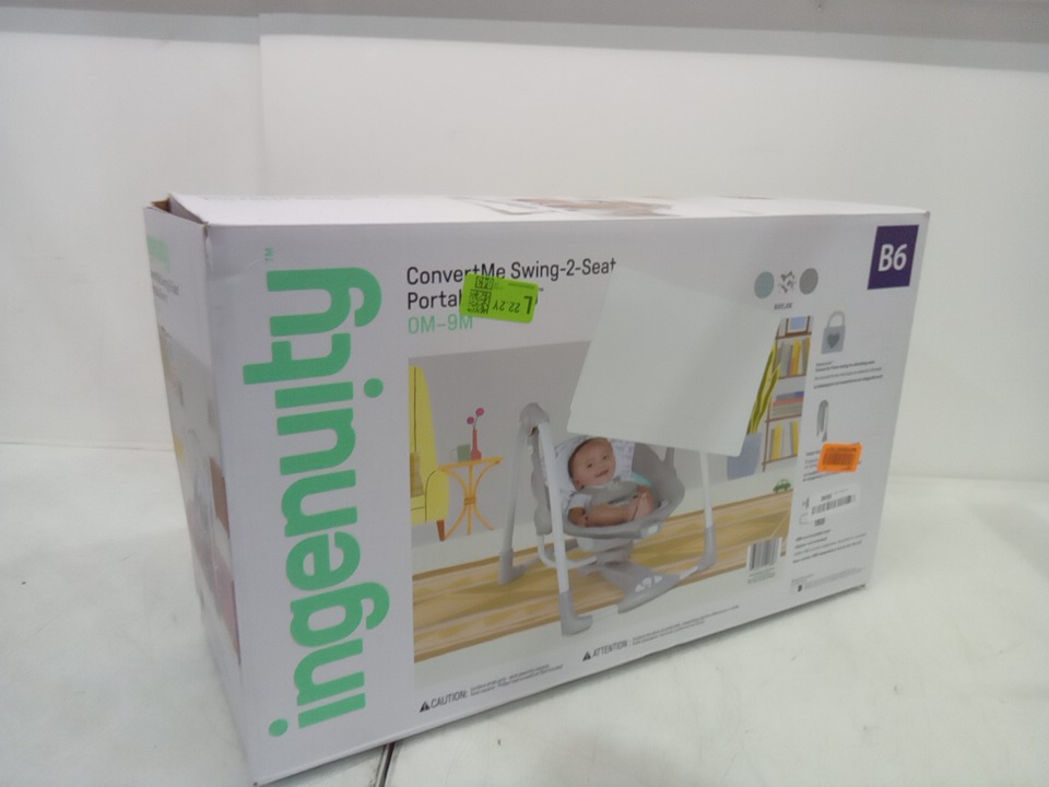 INGENUITY convertme 2-in-1 compact portable plug in automatic baby swing and infant seat - 0 to 9 months - 6lbs to 20lbs - grey - (model: 12189-ES)