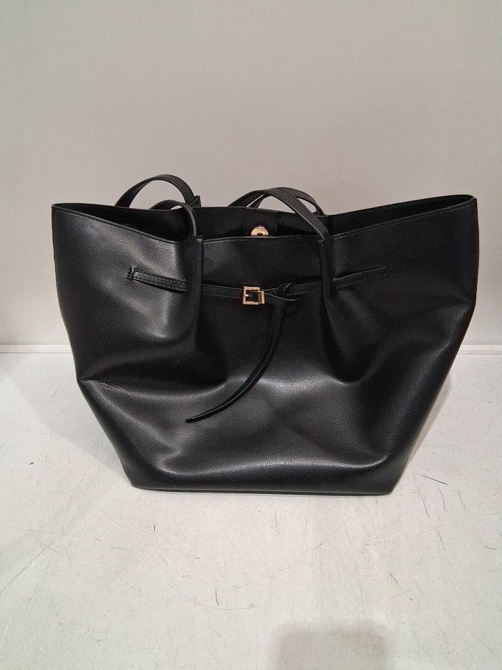 a new day Belted Pinched Handle Tote Handbag - black (style: 024-06-8999)