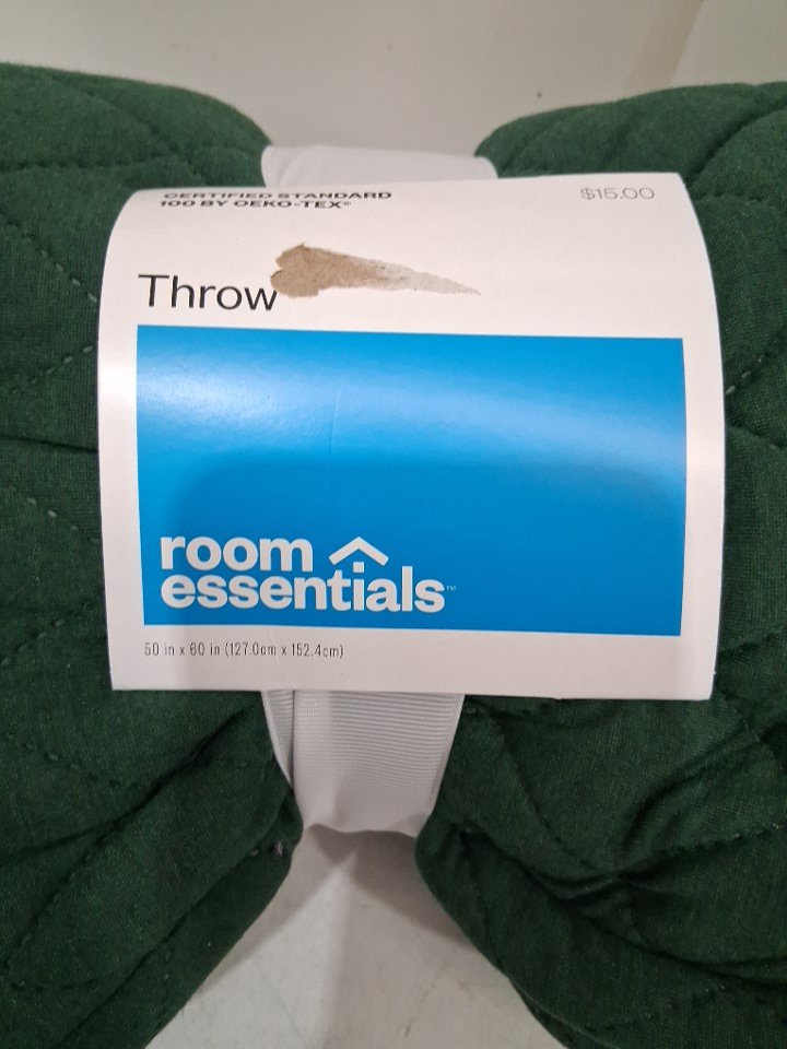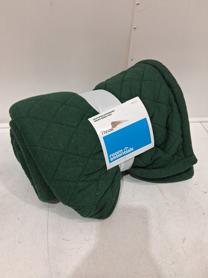 Room Essentials Quilted Jersey Throw Blanket with Faux Shearling Reverse Heathered - 50" X 60" - GREEN