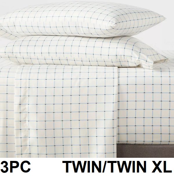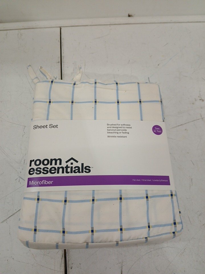 3pc room essentials microfiber sheet set - flat sheet, fitted sheet, pillow case - twin / twin xl - BLUE GRID